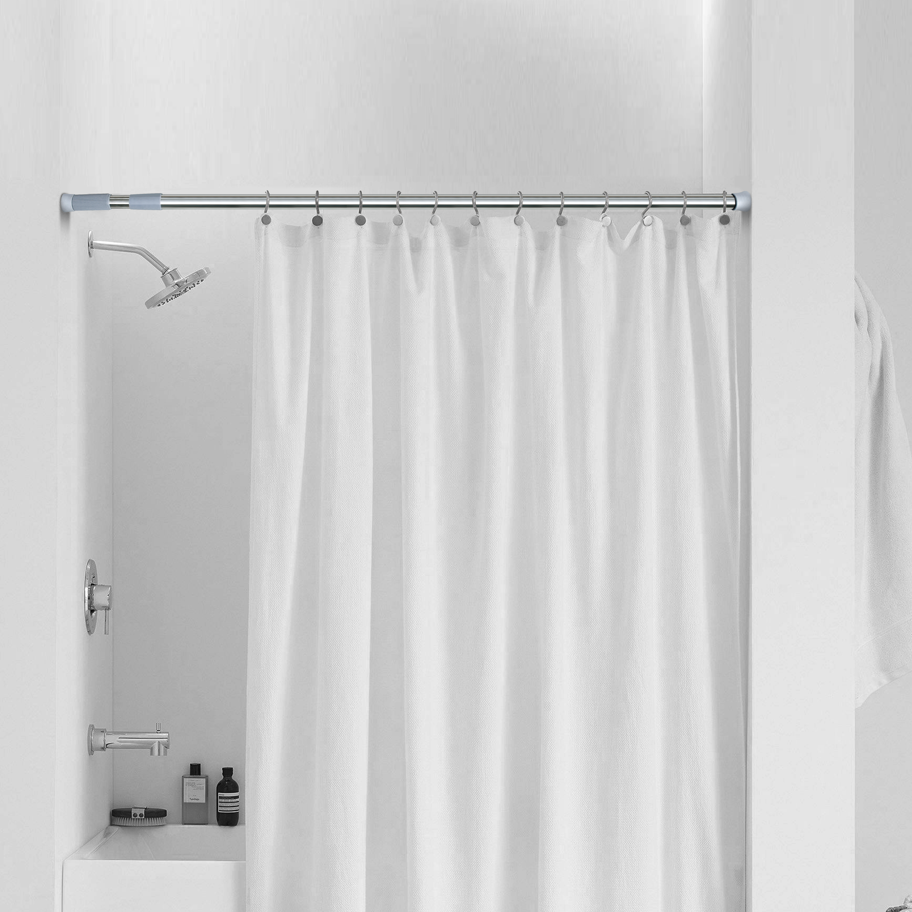 Этот раздвижной карниз станет удобным решением для установки шторки в ванной или душевой зоне. Благодаря регулируемой длине от 135 до 235 см, он подходит для разных планировок и легко подстраивается под конкретный размер ванной без дополнительных инструментов.